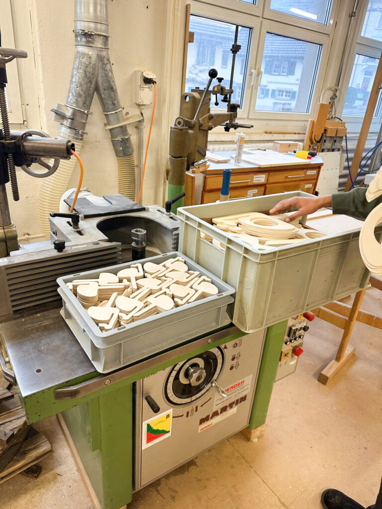 Die Rohlinge für den Holzflamingo entstanden in der Zürcher Eingliederungs Schreinerei. Mit grosser Sorgfalt und handwerklichem Können wurden dort die Flamingo-Formen vorbereitet.