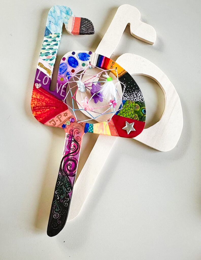 Aus den sorgfältig gefertigten Rohlingen entsteht ein persönliches Kunstwerk: Jede Familie gestaltet ihren eigenen Flamingo – bunt, individuell und voller Bedeutung. Mit Farben, Symbolen, Namen oder persönlichen Botschaften wird er zu einem Ausdruck von Hoffnung, Zusammenhalt und Erinnerung. So sind mittlerweile schon ganz einzigartige Kunstwerke entstanden, von denen einige auch unser Esszimmer schmücken. Ein kleiner Holzrohling, welcher ebenfalls von den Familien gestaltet wird und den Namen des Kindes enthält, dient als Türschild am Gästezimmer.
